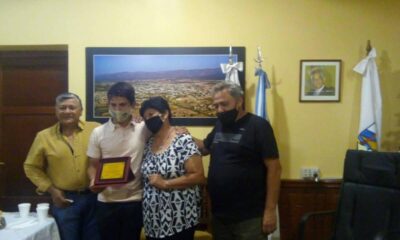 El Intendente Municipal, Oscar Macías, le entregó una plaqueta. Díaz es uno de los jóvenes con más...