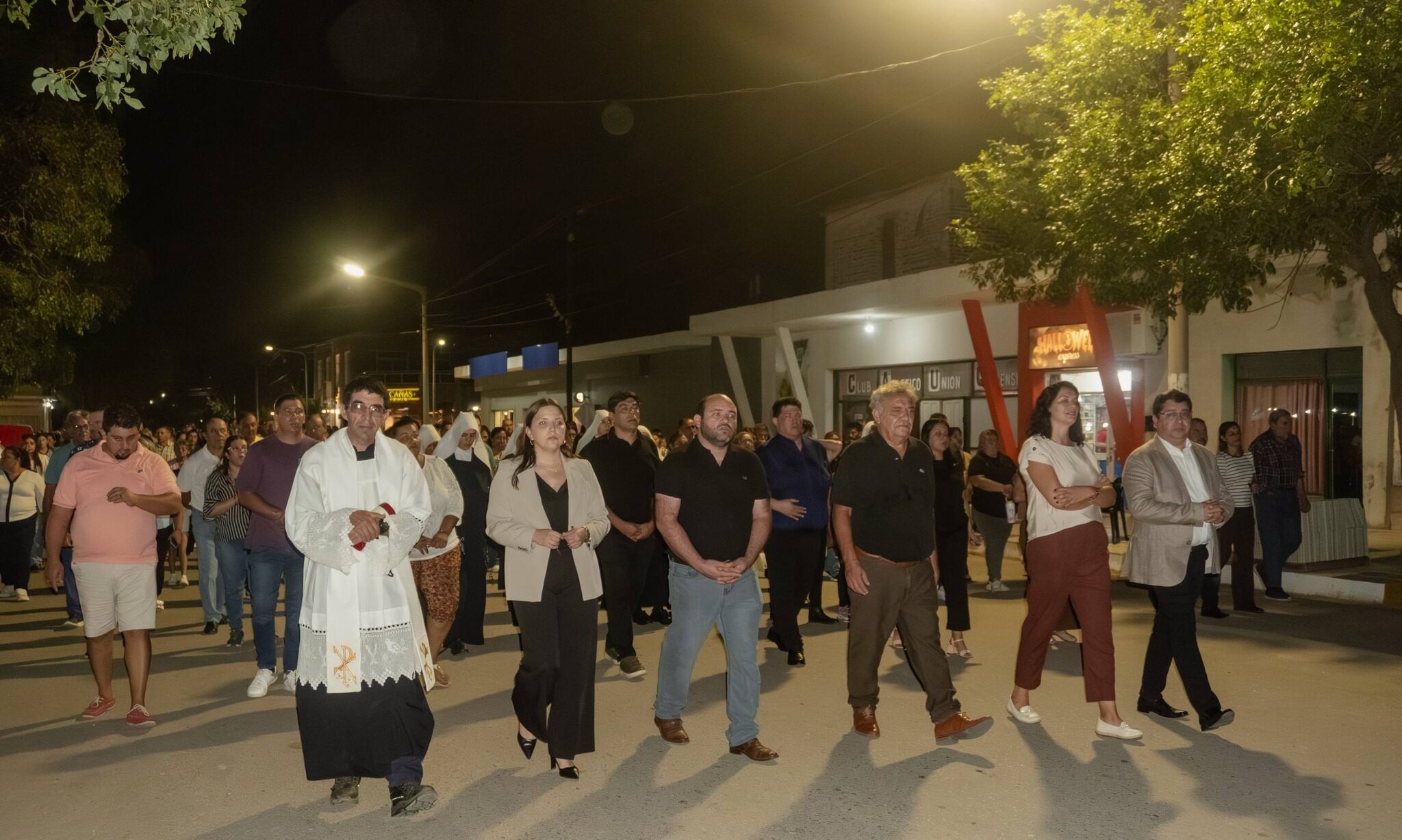 El recorrido se desarrolló en un clima de profunda fe y devoción. Al frente marcharon las banderas de ceremonia de distintos establecimientos educativos, seguidas por delegaciones escolares. La imagen de San José fue transportada por integrantes de la Maratón de la Fe, alumnos de la promoción del Instituto San José y bomberos voluntarios, en uno de los momentos más emotivos de la jornada.