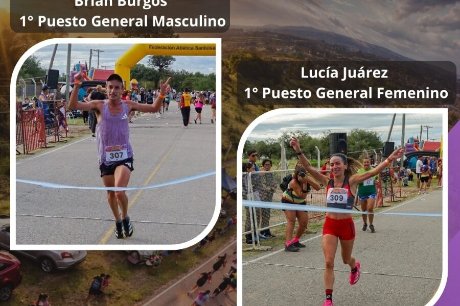 En la clasificación general masculina, el triunfo quedó en manos de Brian Burgos, quien cruzó la meta en primer lugar demostrando un gran nivel competitivo. En tanto, entre las damas, la vencedora fue Lucía Juárez, quien volvió a destacarse en esta competencia y reafirmó su protagonismo en el atletismo regional.